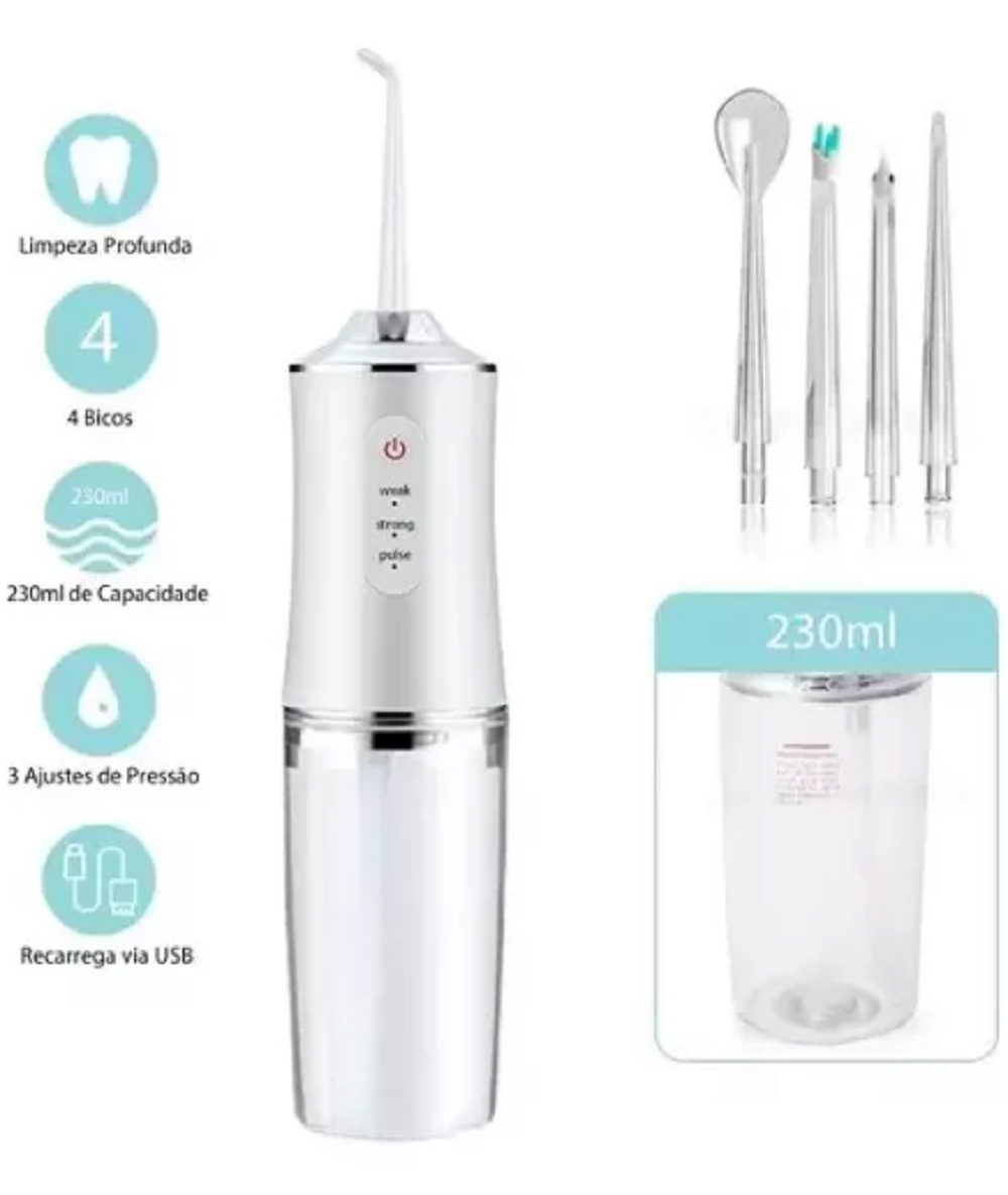 El Irrigador Bucal Portátil es un dispositivo de limpieza dental que ayuda a reducir eficazmente los residuos de alimentos, los gérmenes y la suciedad, mejorando la condición oral. Es especialmente útil para personas con implantes dentales, aparatos de ortodoncia o retenedores.