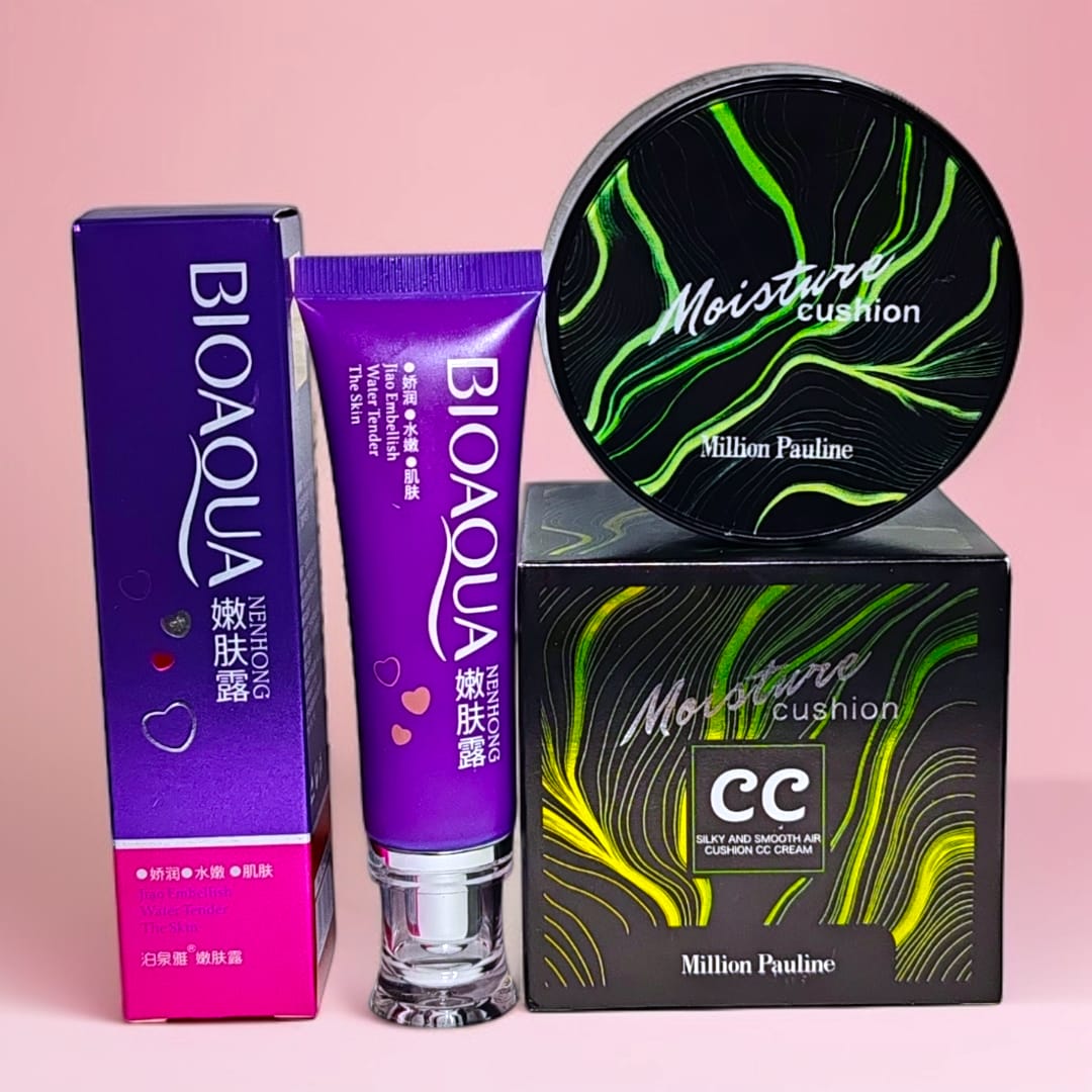 COMBO DE BASE CUSHIÓN MILLION PAULINE ALTA COBERTURA + DESPIGMENTANTE CORPORAL Y FACIAL BIOAQUA